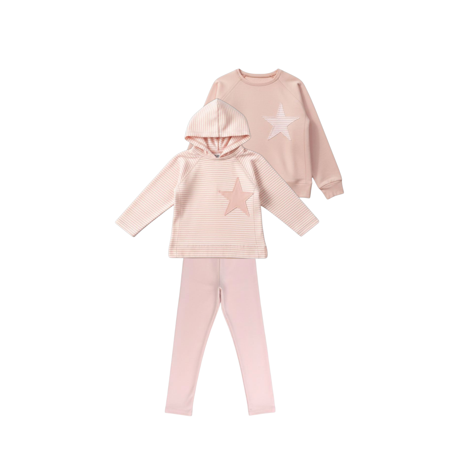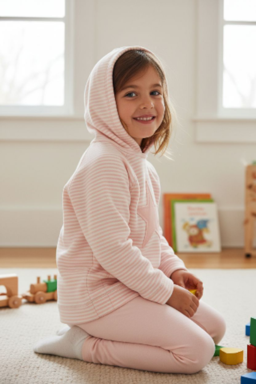 Camiseta sudadera niña color rosa nude a rayas con estrella pequeña delante en rosa