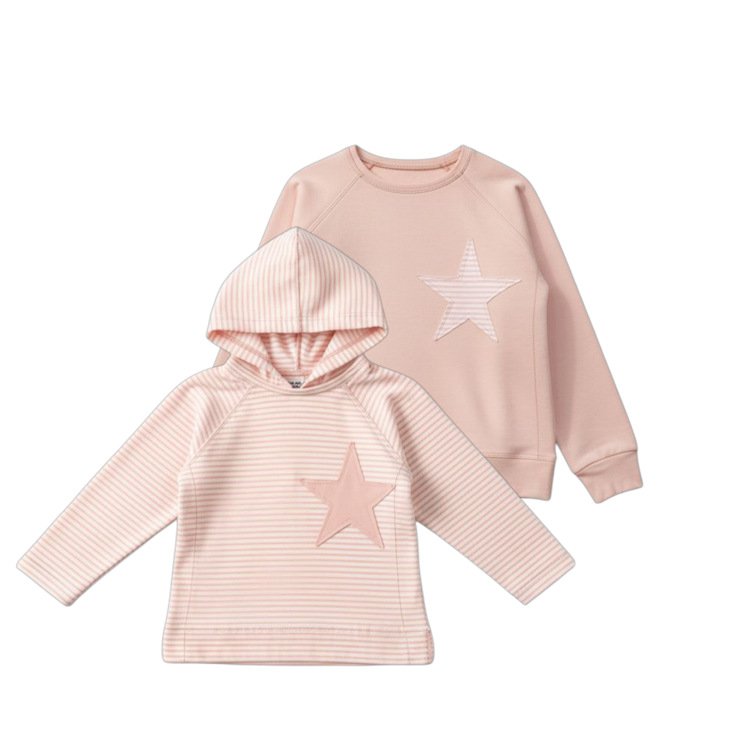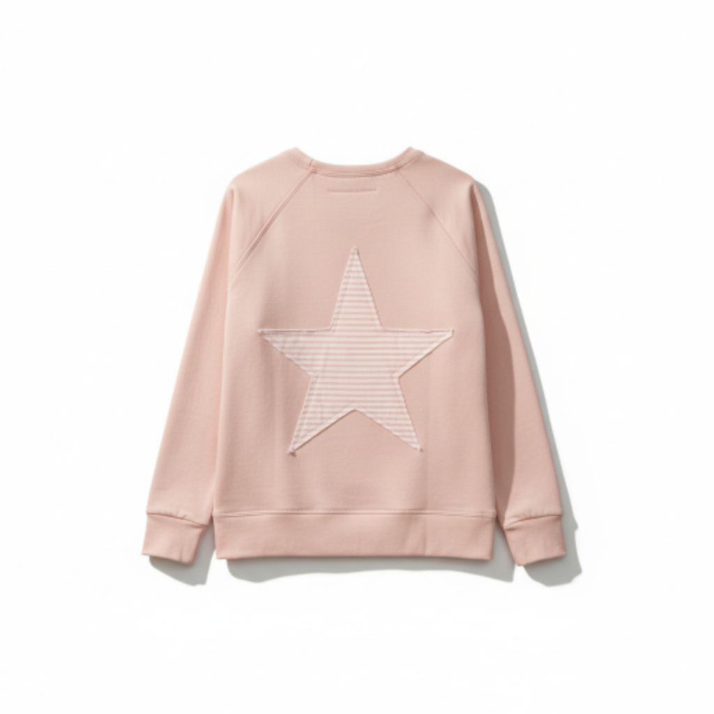 Felpa sudadera niña color rosa nude con estrella pequeña delante a rayas rosa y white off y una estrella grande detrás a rayas igual.